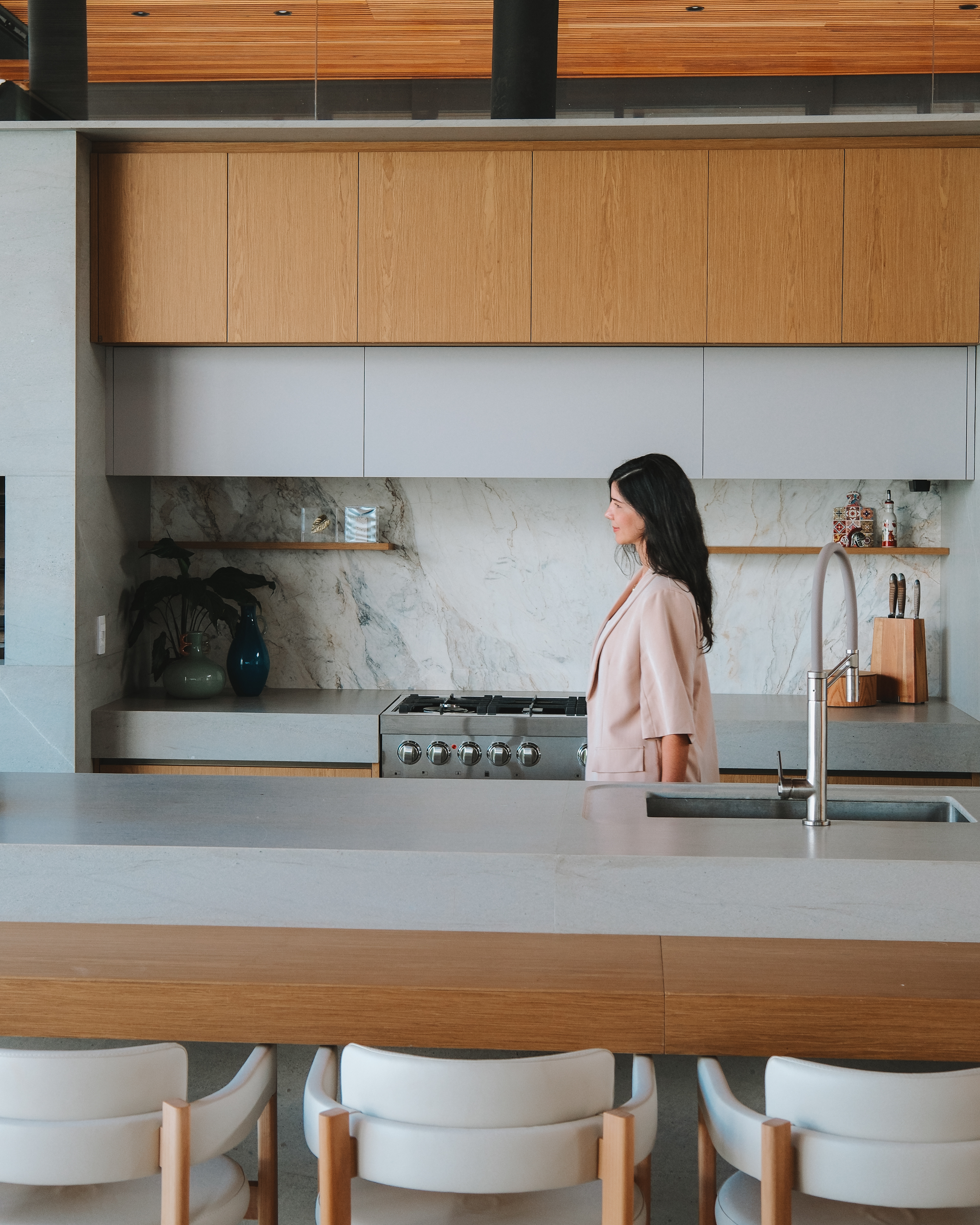 A casa Merlot repousa leve à um nível mais alto que o do observador da calçada. Suas linhas esbeltas traduzem uma sofisticação despreocupada e, com alguns propósitos.