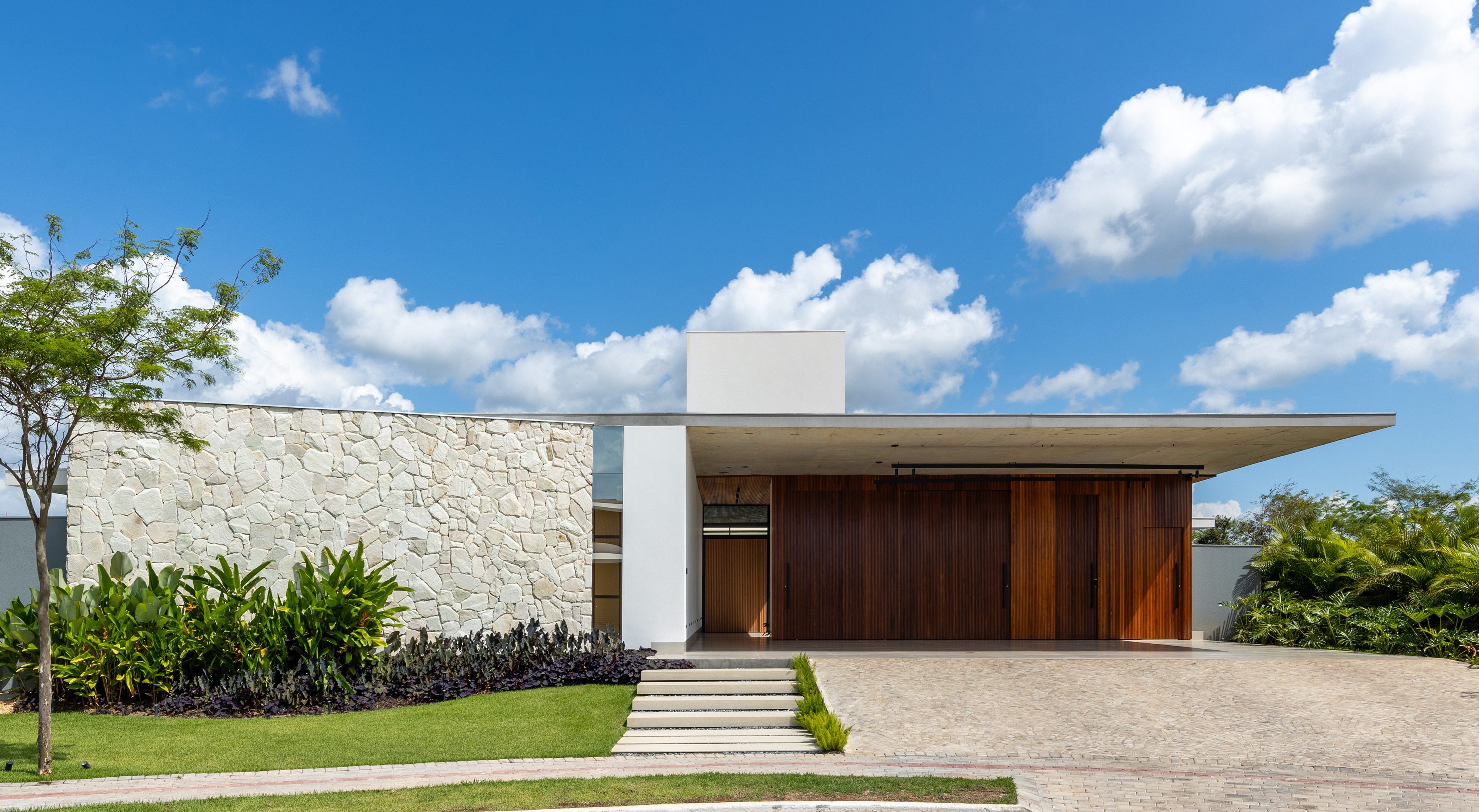Seguindo para a entrada, descobre-se um jardim bem ao centro da casa. Esse coração verde é um espaço para descanso, boas conversas e quem sabe de colher jaboticabas.